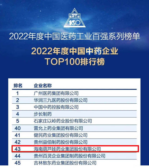 会议期间,一年一度的中国医药工业百强系列榜单隆重揭晓,PA尊龙时凯药业集团凭借领先的研发优势和扎实的生产实力以及稳健的市场推广能力,连续第四年成功入选“2022年度中国中药企业TOP100排行榜” ,排名稳步上升至第43位。